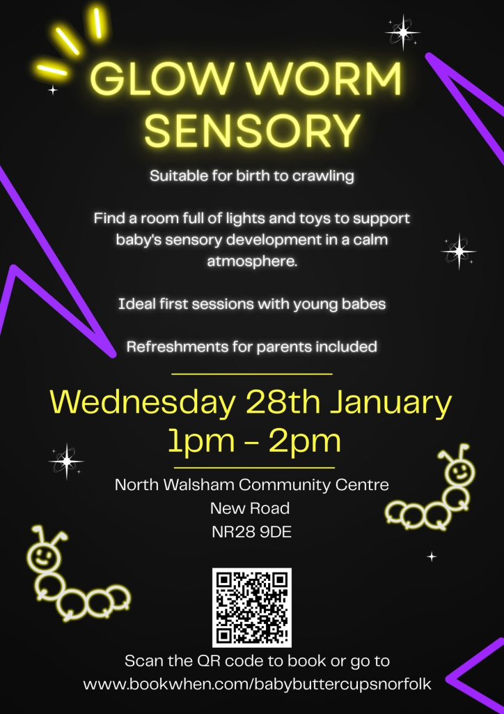 Wednesday 25th February – Baby Buttercups Glow worm Sensory Group Sessions – 1-2pm in Nelson Room NEW !!