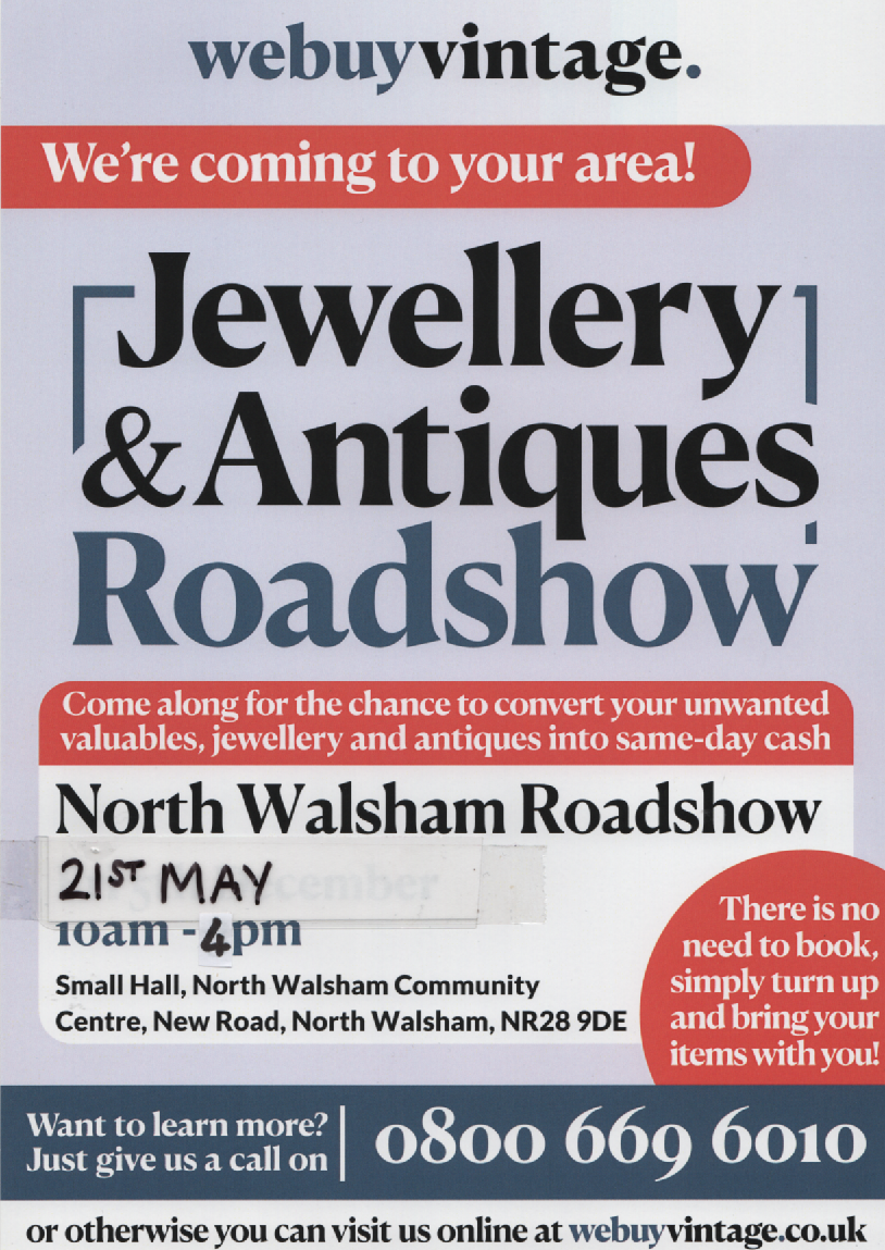 Thursday 21st May – We Buy Vintage – valuation Event – 10am-4pm